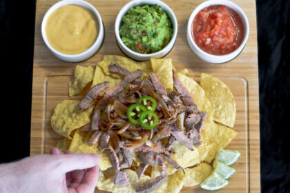 Spicy charred beef thinly sliced with caramelized onions make the perfect topping for nachos. I find the perfect cut of meat is London broil, also …
