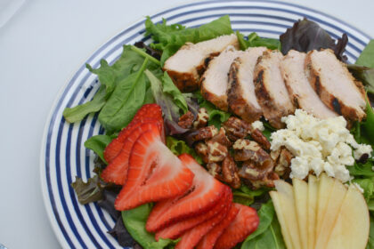 Looking for your new favorite summer salad? If so, give this grilled balsamic chicken with fresh strawberries, apples, candied pecans and feta drizzled with a …