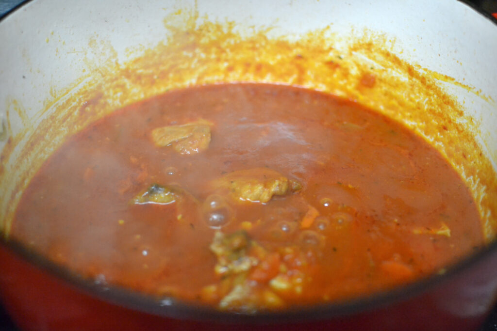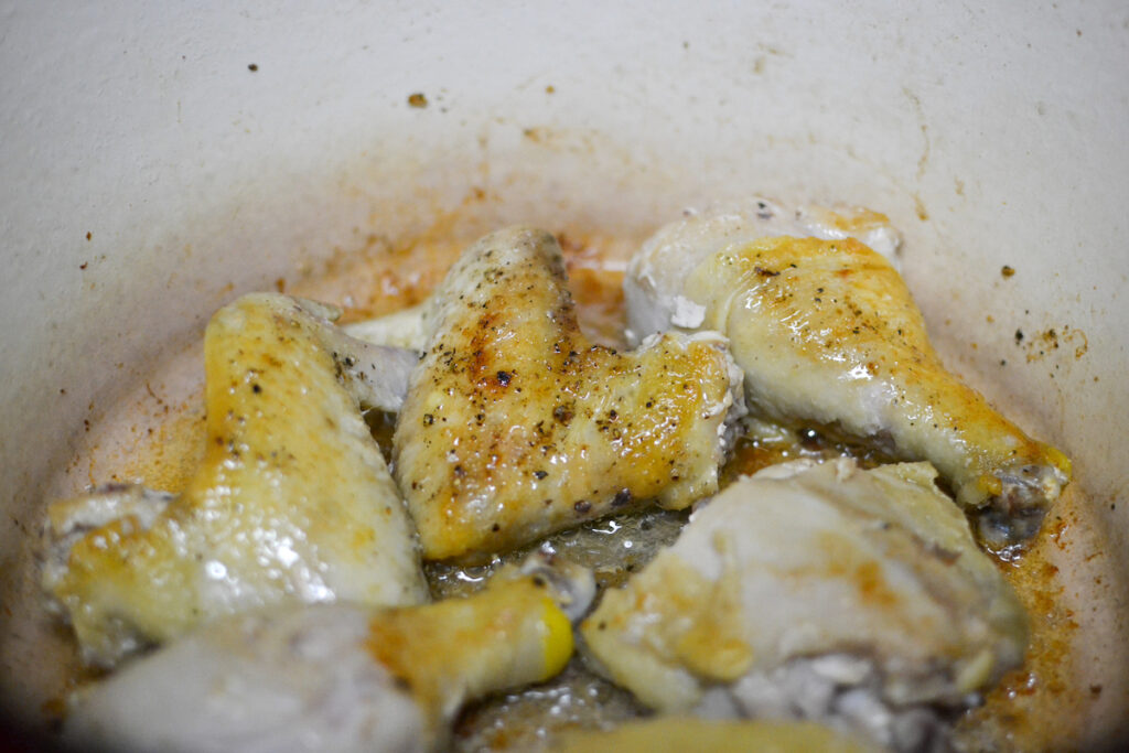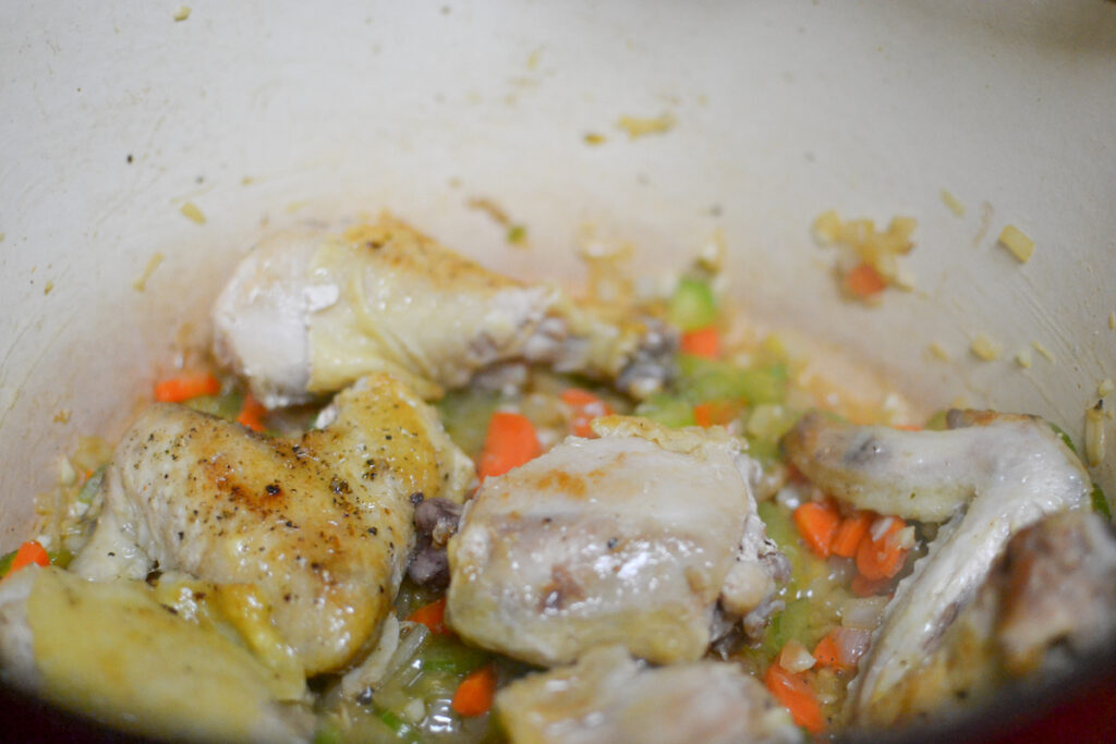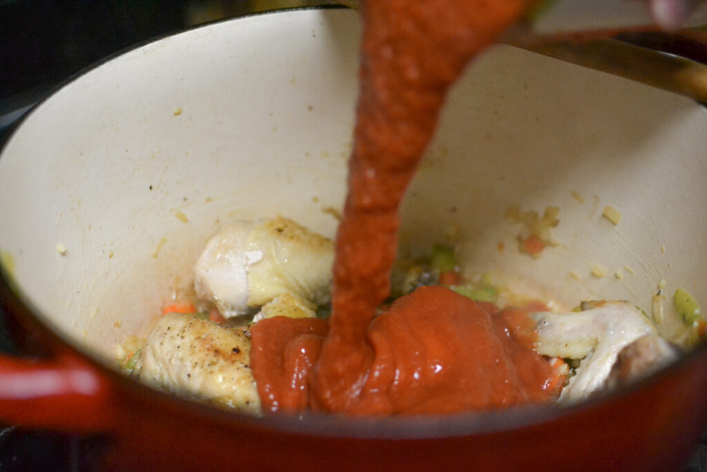 What type of chicken works best? I like to use dark meat as it lends itself to long braising. If you prefer to use breasts, that would work as well though.