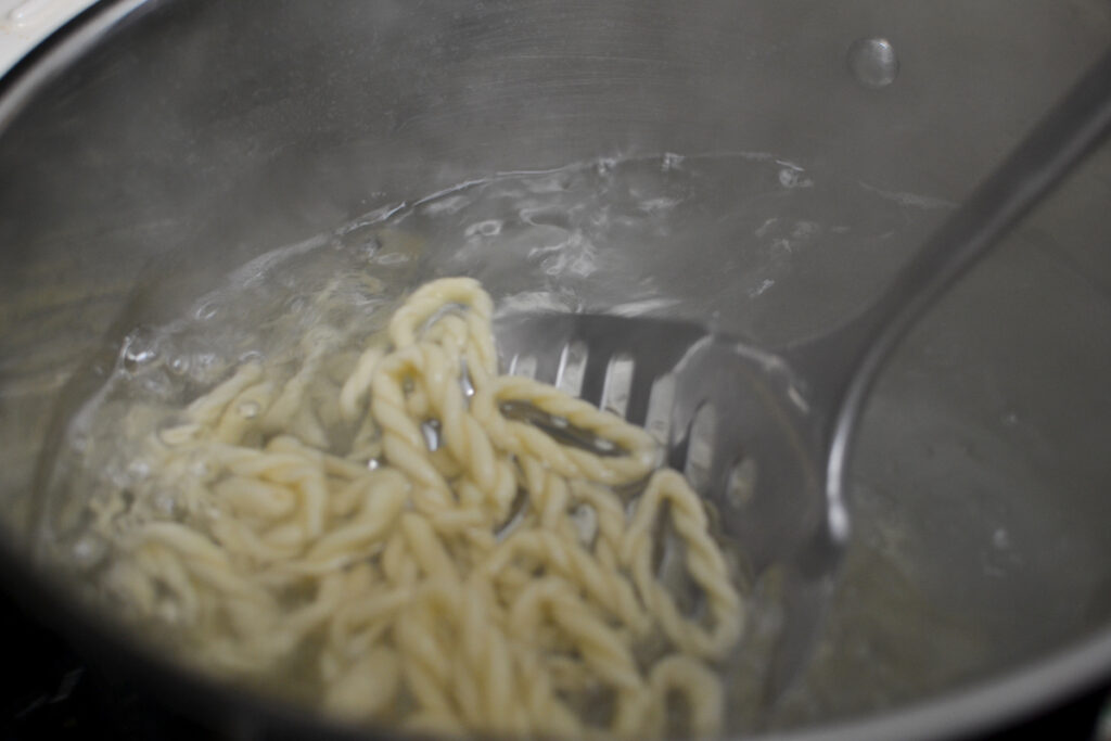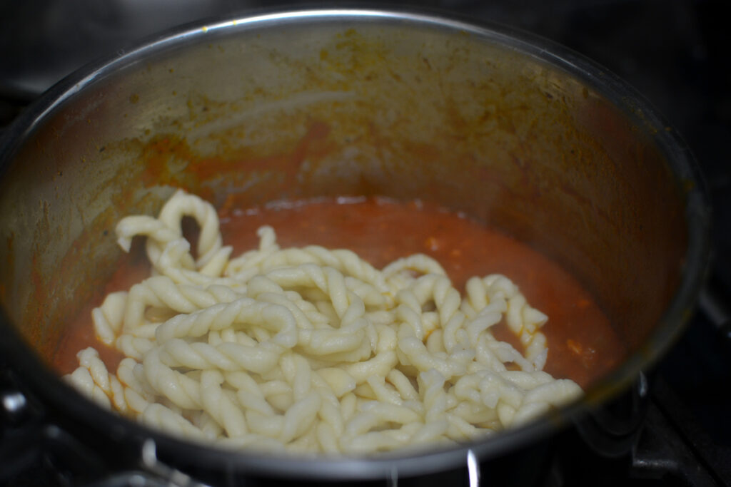 If you can’t find lorighittas and do not want to make them, your favorite pasta will also work beautifully.