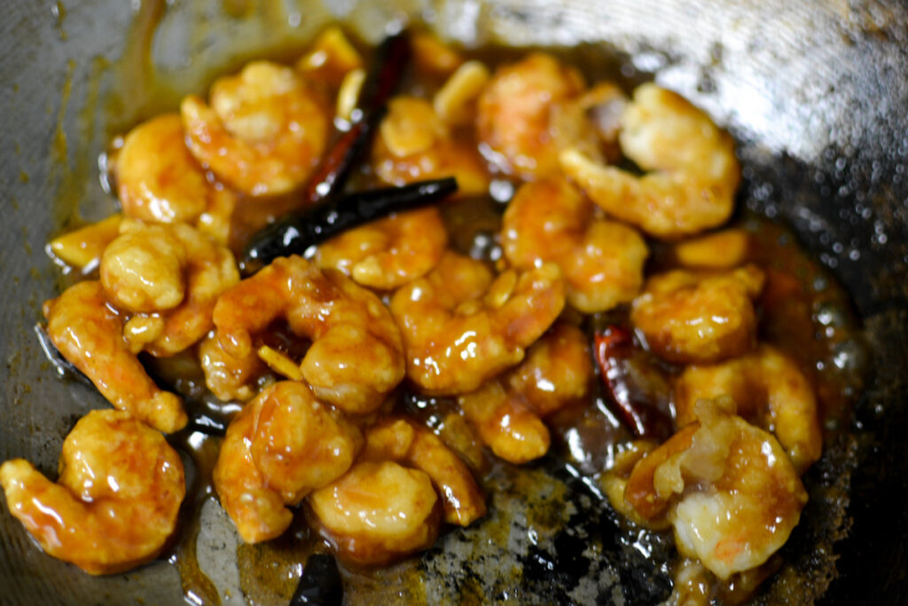 Add the cooked shrimp to the wok with the sauce. Toss to coat and cook for a minute. Serve over your favorite rice!