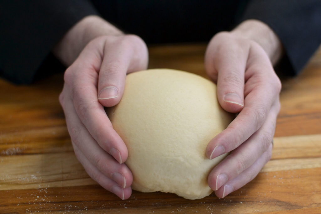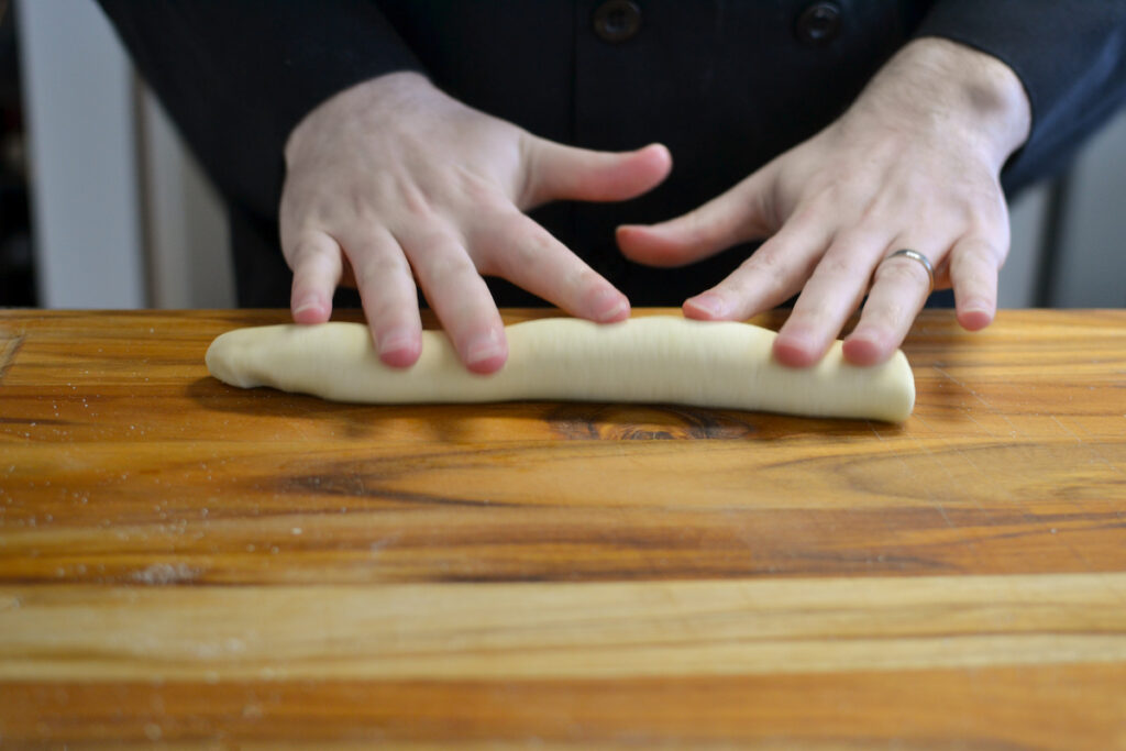 It is best to shape the dough on a wood surface such as a cutting board. The wood allows just the right amount of friction. The dough would just slide across a marble counter.