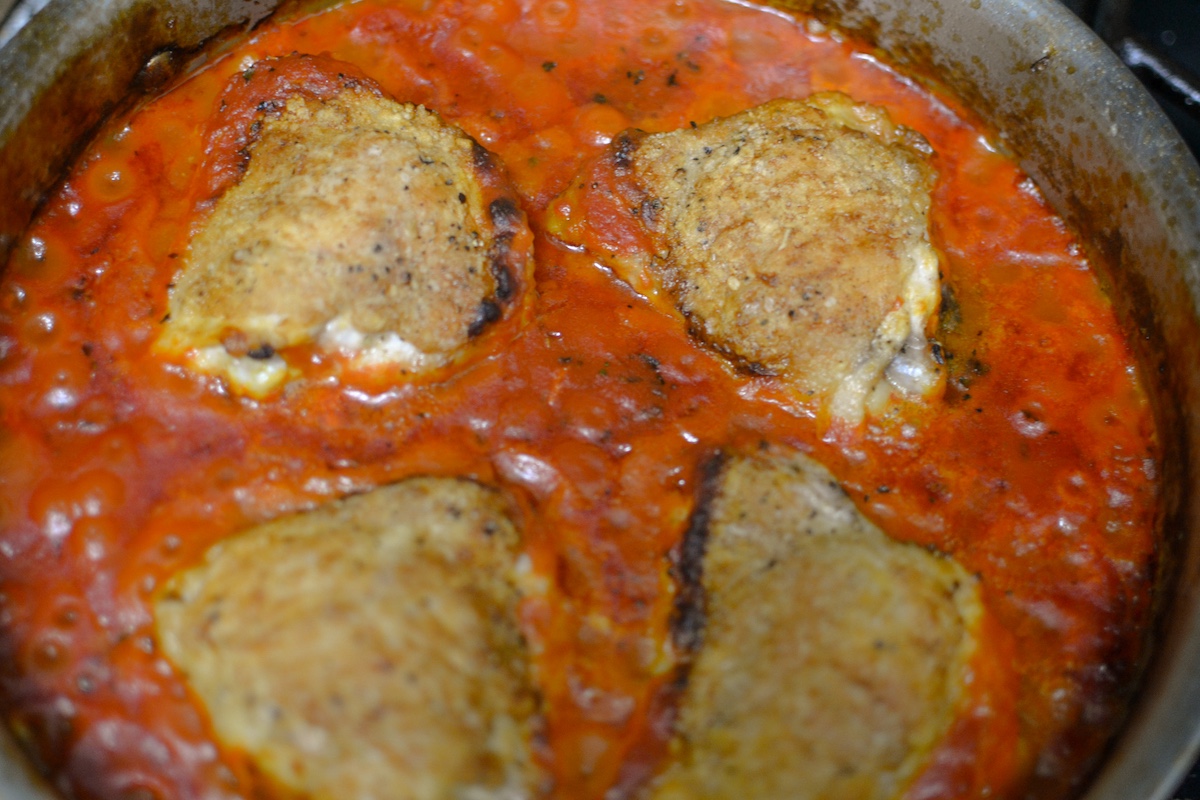 A rustic and comforting Italian dish with savory chicken braised in a tomato sauce.