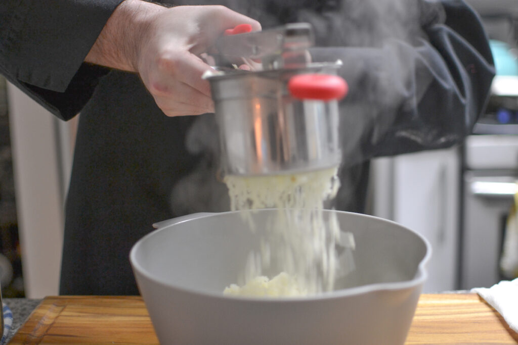 Traditionally this is done on the counter or working bench but starting in a bowl makes it a bit easier. -