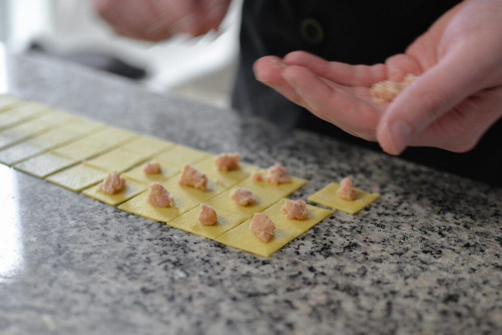 This recipe is based off the registered authentic recipe from the Confraternita del Tortellino (Brotherhood of the tortellini) that was registered with the Bologna Chamber of Commerce in 1974. This recipe makes roughly 350 tortellini.